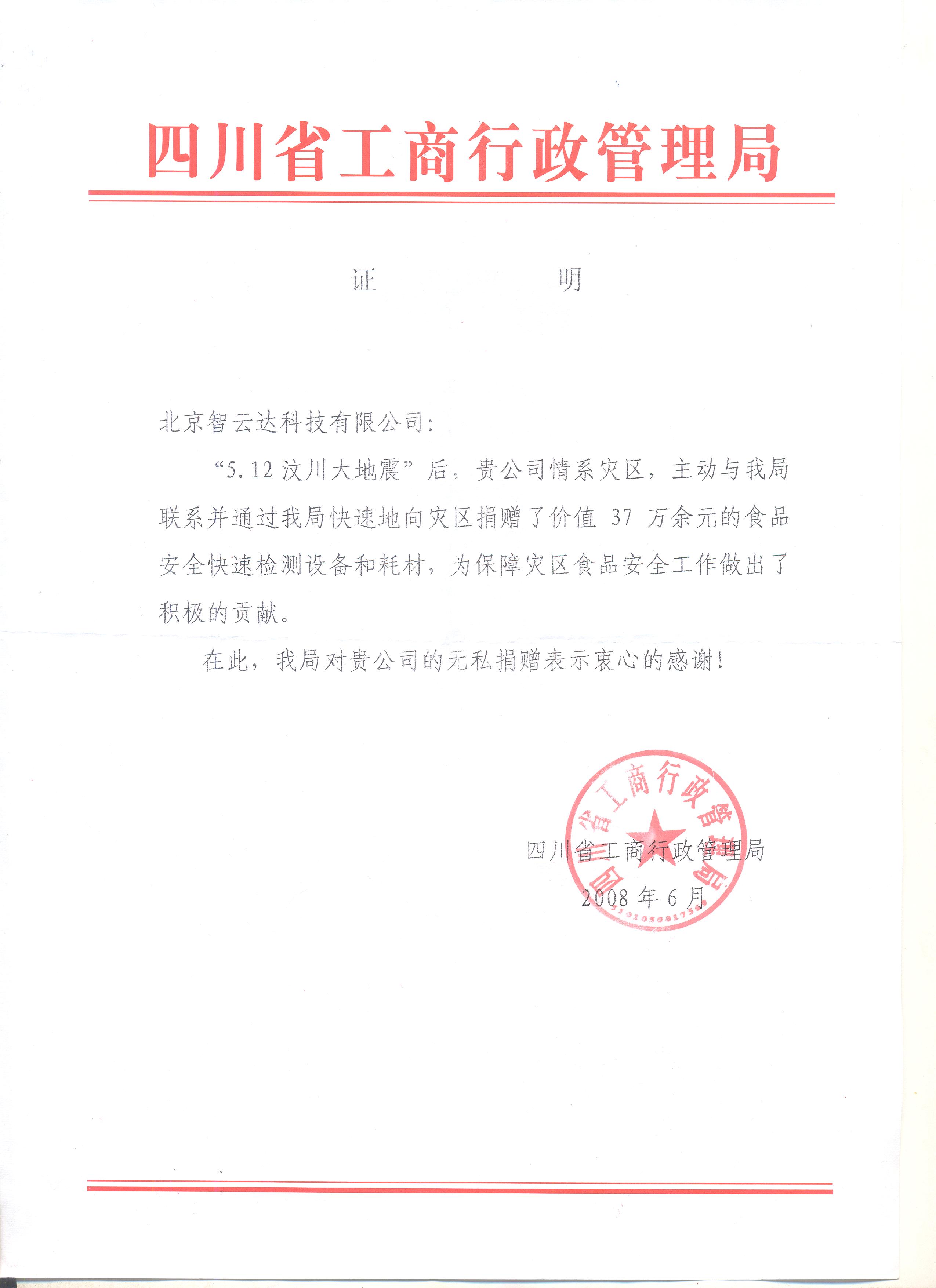 本文關(guān)鍵詞:北京智云達,食品安全快速檢測,四川省工商局,汶川地震