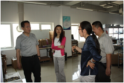 隨后,領導們參觀了儀器試劑生產中心,就有關儀器生產中可能出現的問題,進行了詳細的詢問,在桑總的解答介紹中,于軍司長還親自試用了我司生產的