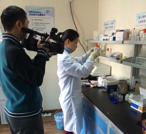 江蘇衛(wèi)視公共新聞?lì)l道3.15專題報(bào)道直播中,“新消費(fèi),我做主!”,江蘇CEC食安體驗(yàn)中心的技術(shù)人員正在現(xiàn)場(chǎng)為食品安全類打假工作提供全方位的檢測(cè)服務(wù)。