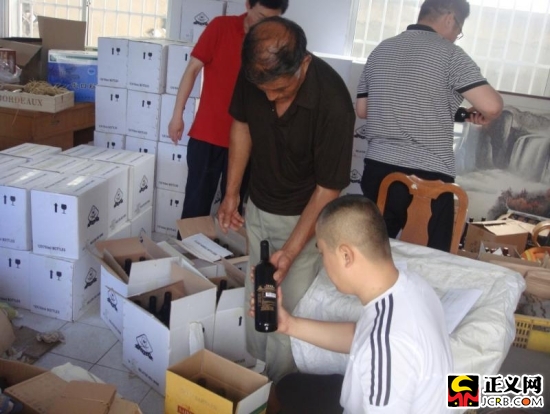 中午12時許,民警果斷出擊,在金城小學不遠處將王某某抓獲。“你們干什么,憑什么抓我!”開始她情緒十分激動。民警忙解釋說:“你和張某某涉嫌生產假冒偽劣葡萄酒,我們現在依法對你進行傳喚,請配合調查。”聽到這話,王某某頓時癱倒在地。隨后,民警在其住宅樓下的小棚內,當場搜出假酒21箱。13時21分,第三抓捕組在阜山鎮九曲村將正在購買設備配件的韓某某抓獲,從車內繳獲銷售假酒的賬冊一本。14時24分,第二抓捕組在縣城的一居民小區內,將賭博正興的“軍哥”張某某束手就擒。