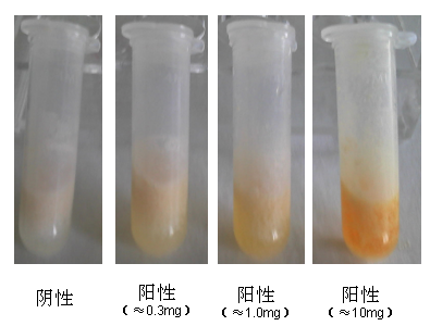 若反應(yīng)溶液出現(xiàn)橙黃色、橙紅色,可判定樣品中含有喹諾酮類物質(zhì),為陽性(+);否則判為陰性(-)