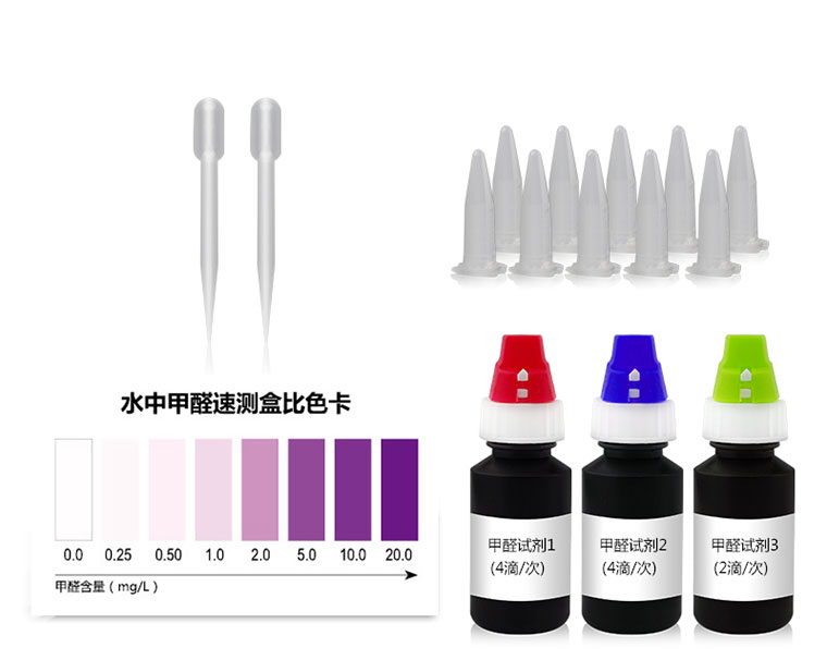 甲醛被世界衛生組織列為致癌物,是一種毒性較強的、可以破壞生物細胞蛋白的物質,能引起人體過敏、腸道刺激反應、中毒等疾患。長期、低濃度接觸甲醛會引起頭痛、頭暈、乏力、感覺障礙、免疫力降低,并可出現瞌睡、記憶力減退或神經衰弱、精神抑郁;長期接觸甲醛可引發呼吸功能障礙和肝中毒性病變。本速測盒適用于水中甲醛含量的快速檢測。
