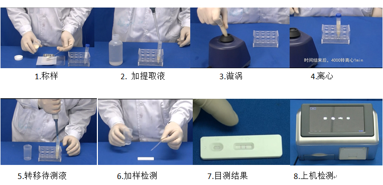 本產(chǎn)品用于快速檢測糧食、谷物以及飼料中的玉米赤霉烯酮,靈敏度為100 μg/kg,整個檢測過程只需要5分鐘,適用于各類企業(yè)及檢測機(jī)構(gòu)。