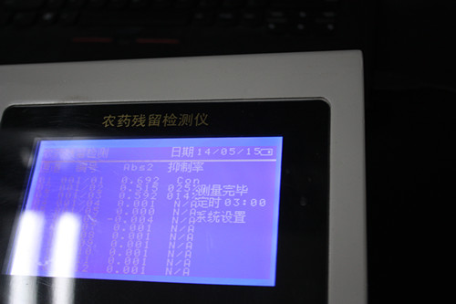 實驗結果:抑制率分別為25%和14%,農殘未超標。判定依據,抑制率≥50%時,農殘超標。