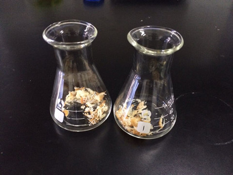 1、 將樣品粉碎,稱取粉碎的樣品1.0g,于50mL三角瓶中。