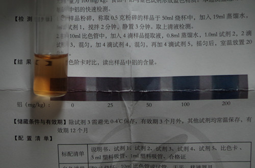 對比標(biāo)準(zhǔn)色階卡,讀出樣品中鋁的含量。結(jié)果顯示鋁合格,均符合國家標(biāo)準(zhǔn)。