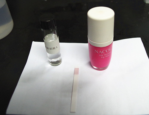 由于唇彩有顏色,因此加入稍許活性炭于檢測液中,攪拌均勻,過濾,靜置。取上清液進(jìn)行檢測。