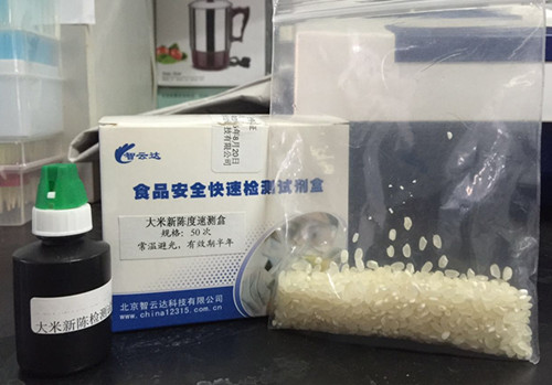搖晃幾下,30秒內(nèi)觀察顏色變化,如果溶液呈翠綠、淺綠色,則為新米,黃色、橙色、橙紅色為陳米。