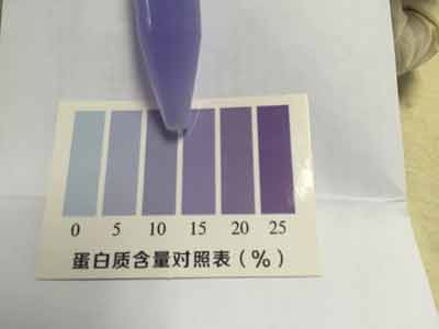 取4 mL顯色液加入比色管中,蓋上蓋,用力將奶粉全部搖溶,顯色3分鐘,在3~5分鐘內(nèi)將比色管襯在白紙上與標準比色卡進行對比,找出與乳粉蛋白質(zhì)標準比色卡上相近的色階,即為每100g乳粉樣品中蛋白質(zhì)的含量。